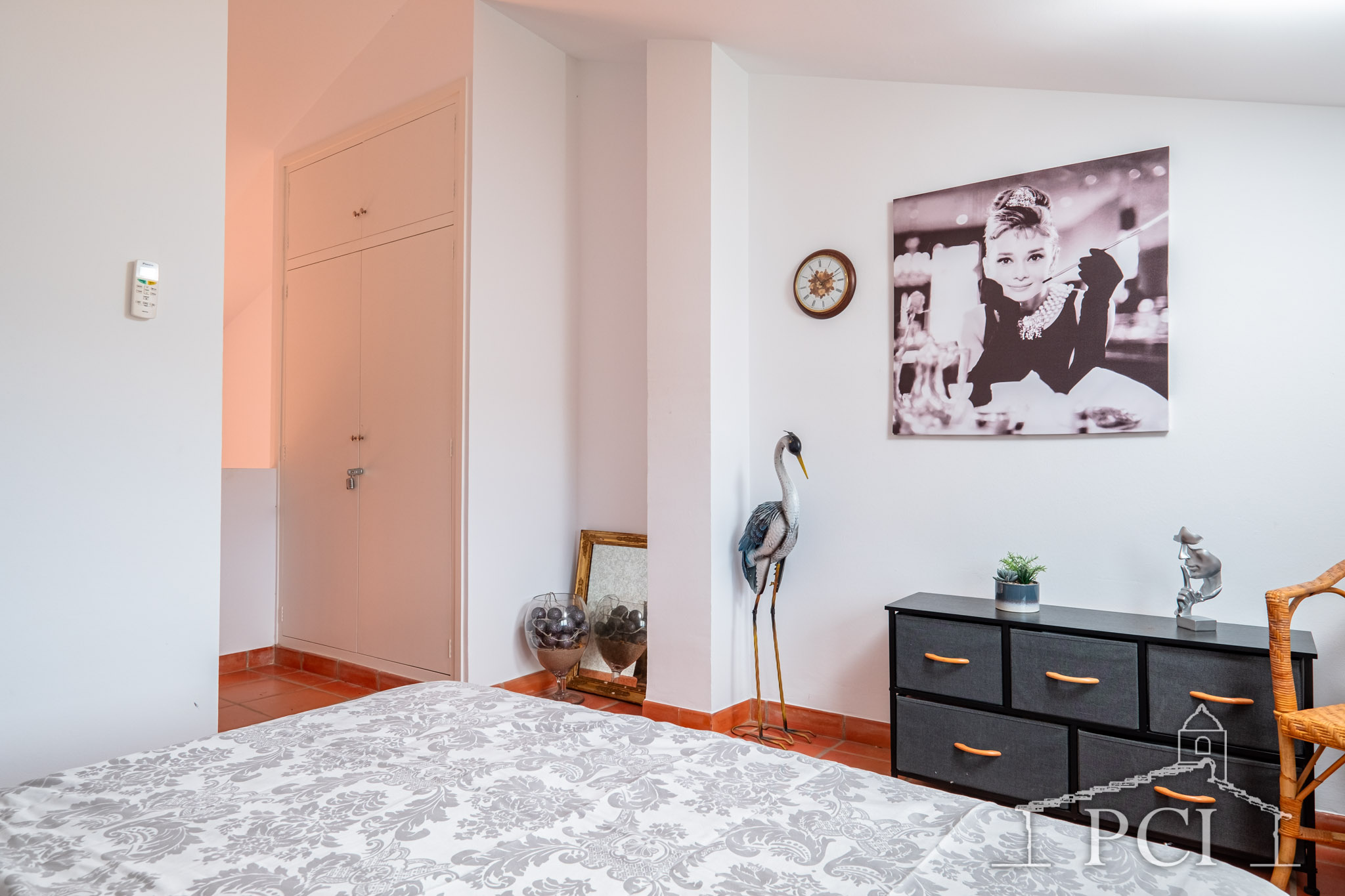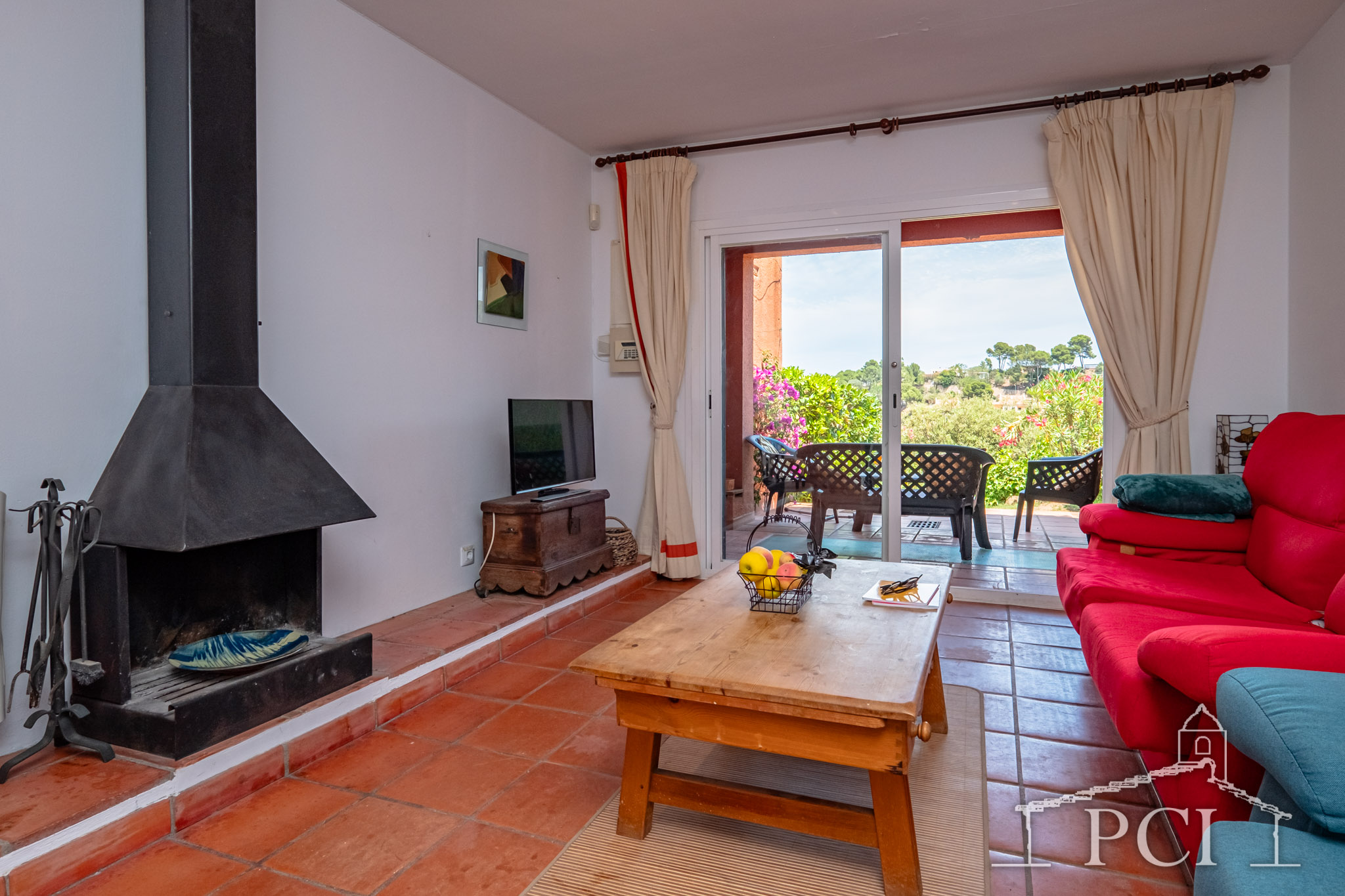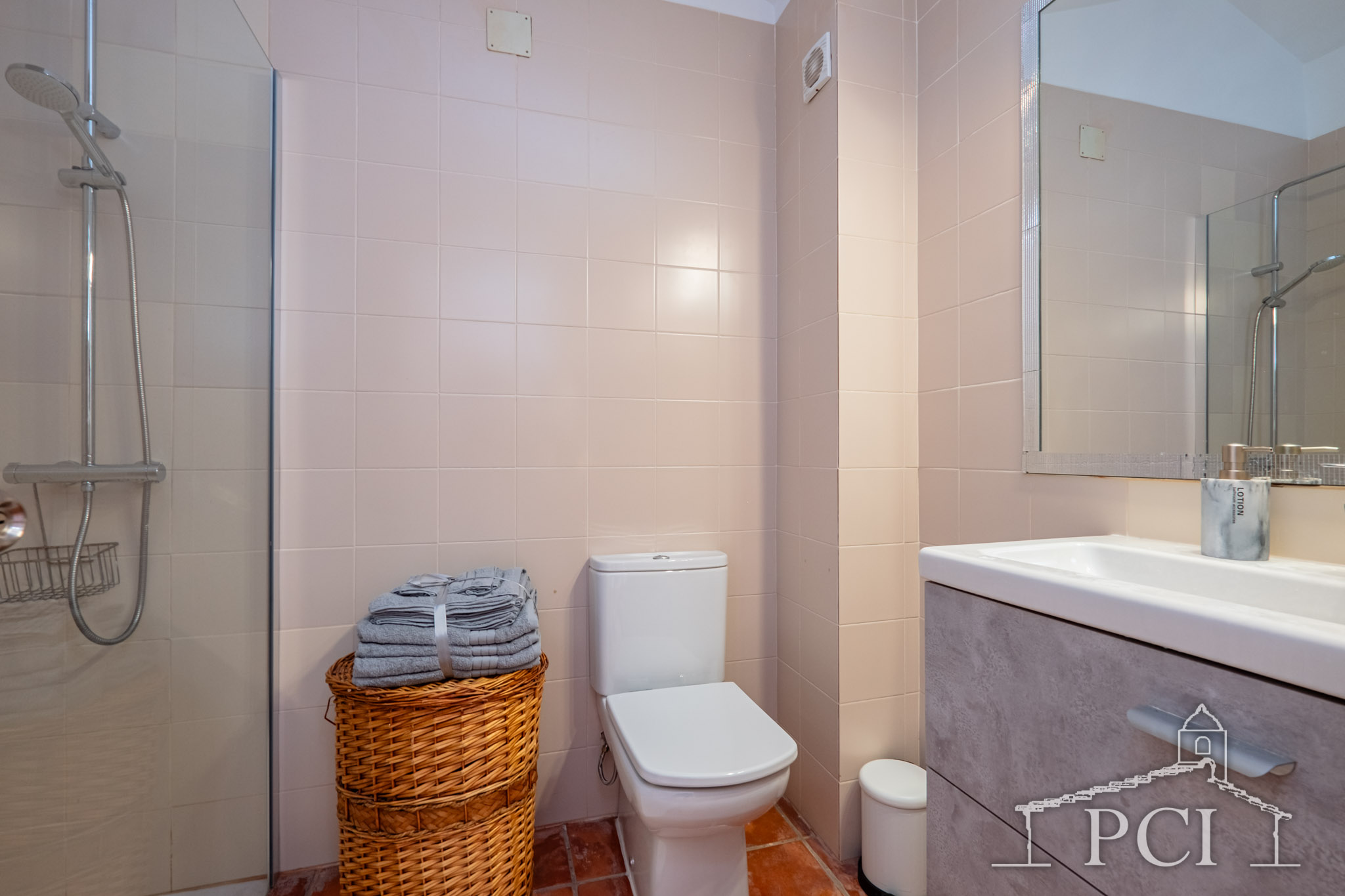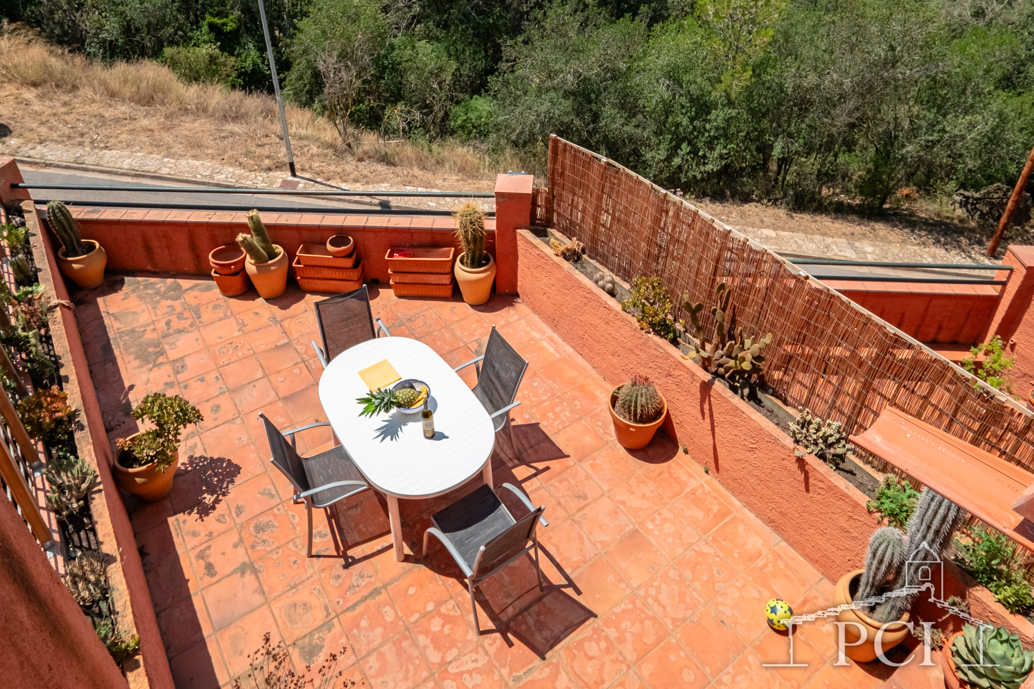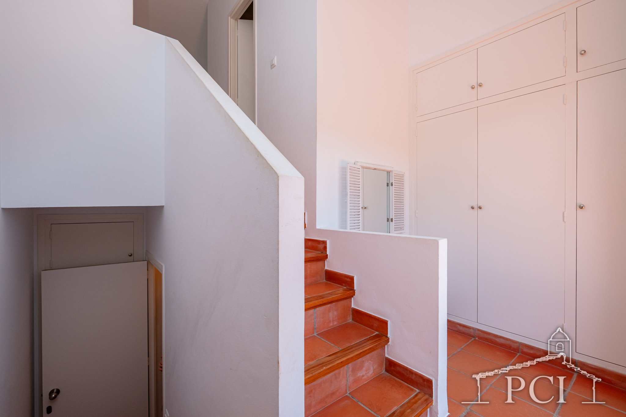 It has 4 bedrooms and 3 bathrooms located over 3 levels. Street parking in the community road. The community has a large pool, surrounded by terrace and gardens. There is a beautiful sea view from the pool area and also from the house entrance and some of the terraces.