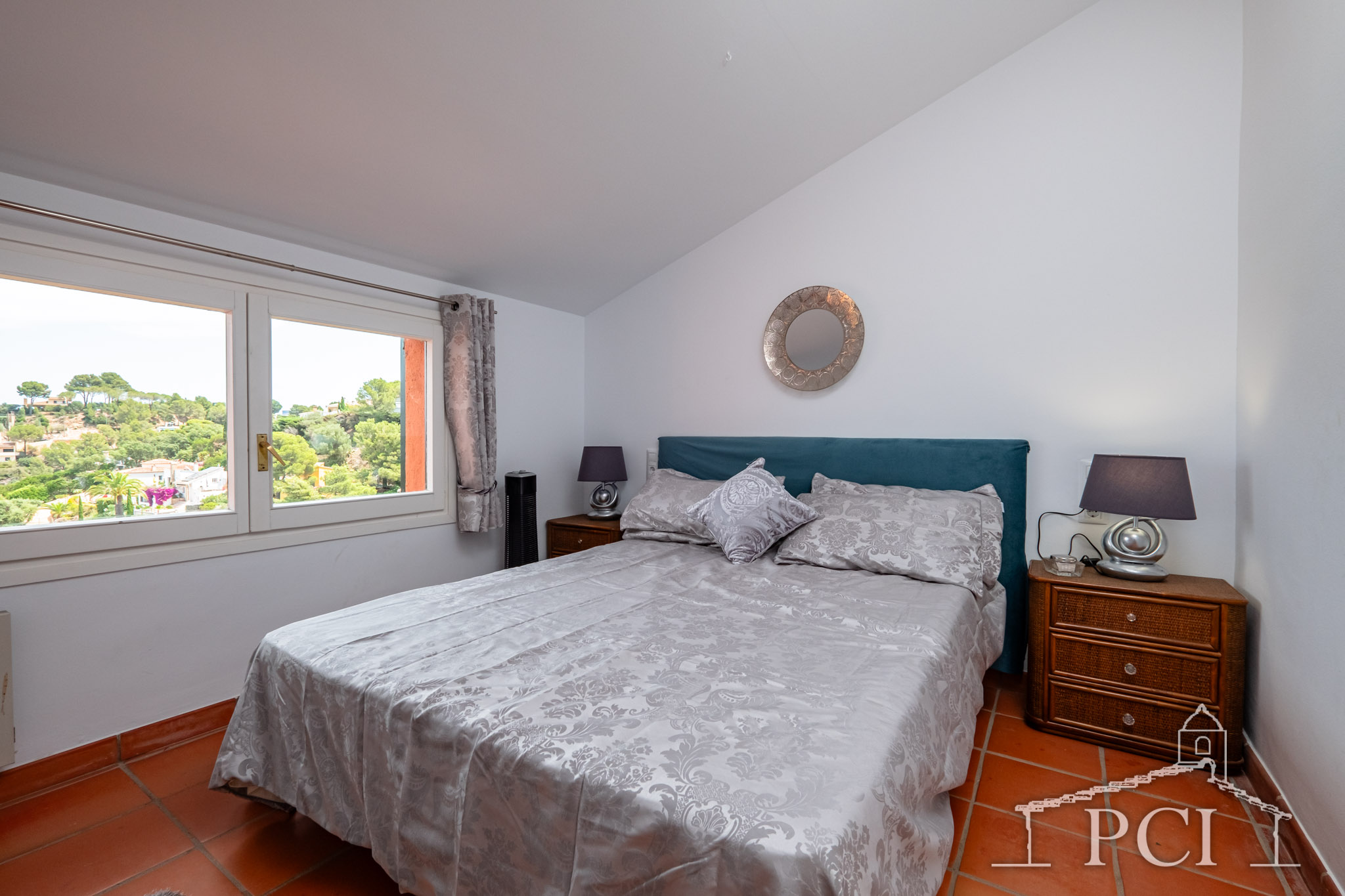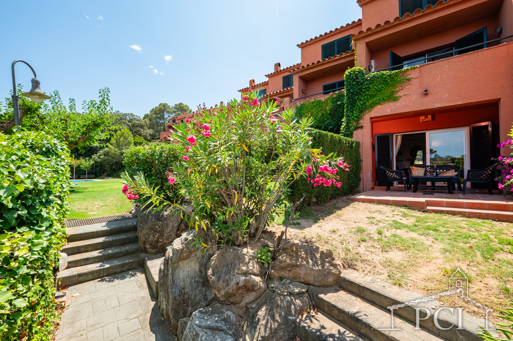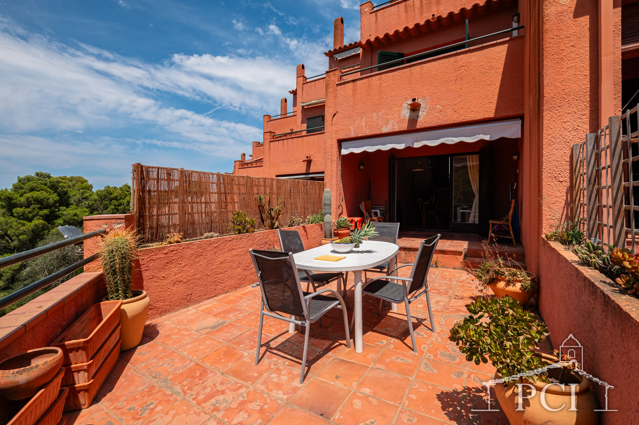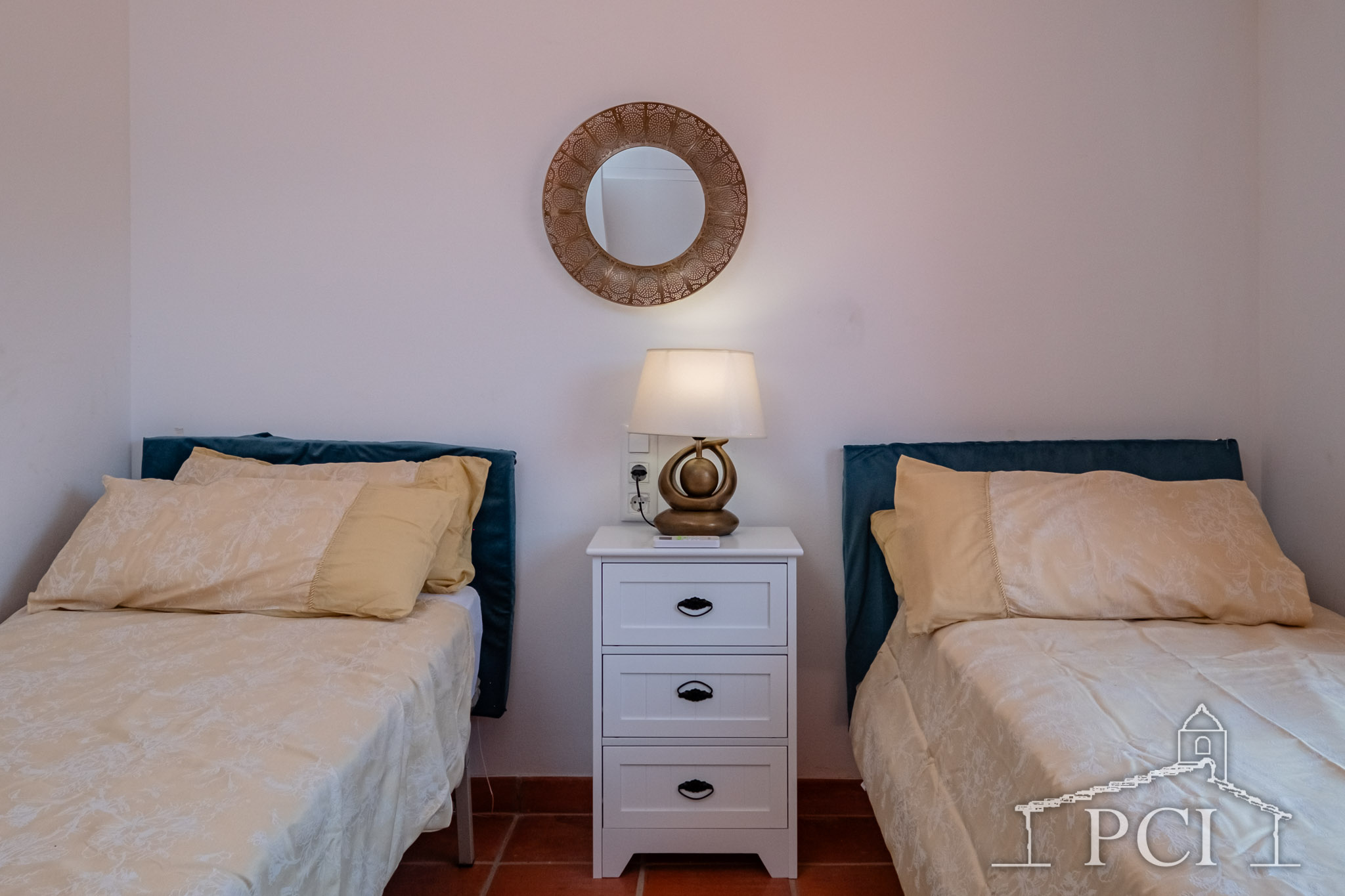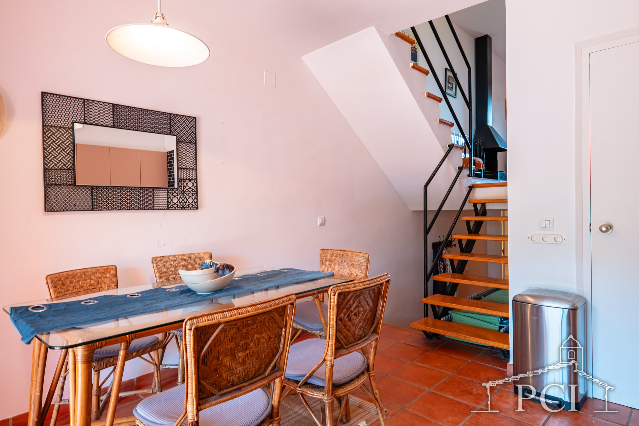 It has 4 bedrooms and 3 bathrooms located over 3 levels. Street parking in the community road. The community has a large pool, surrounded by terrace and gardens. There is a beautiful sea view from the pool area and also from the house entrance and some of the terraces.