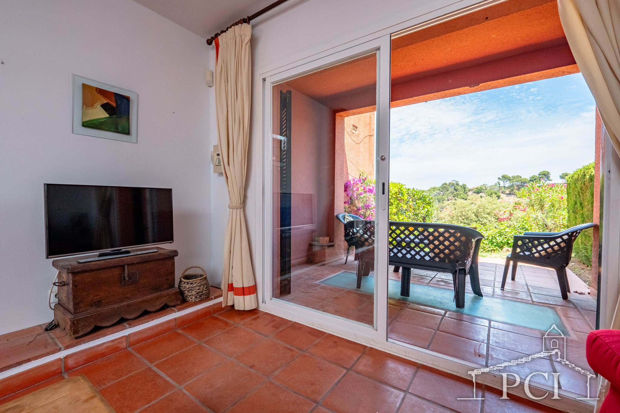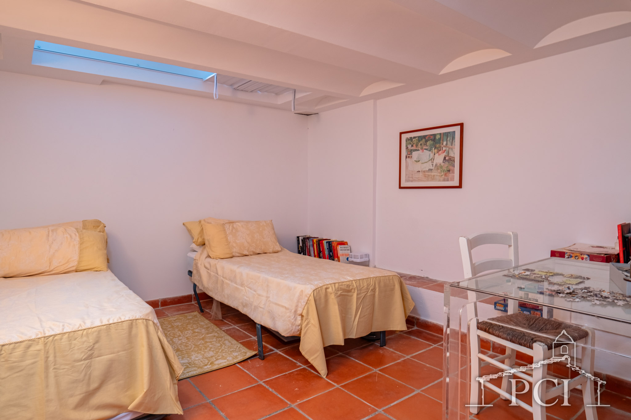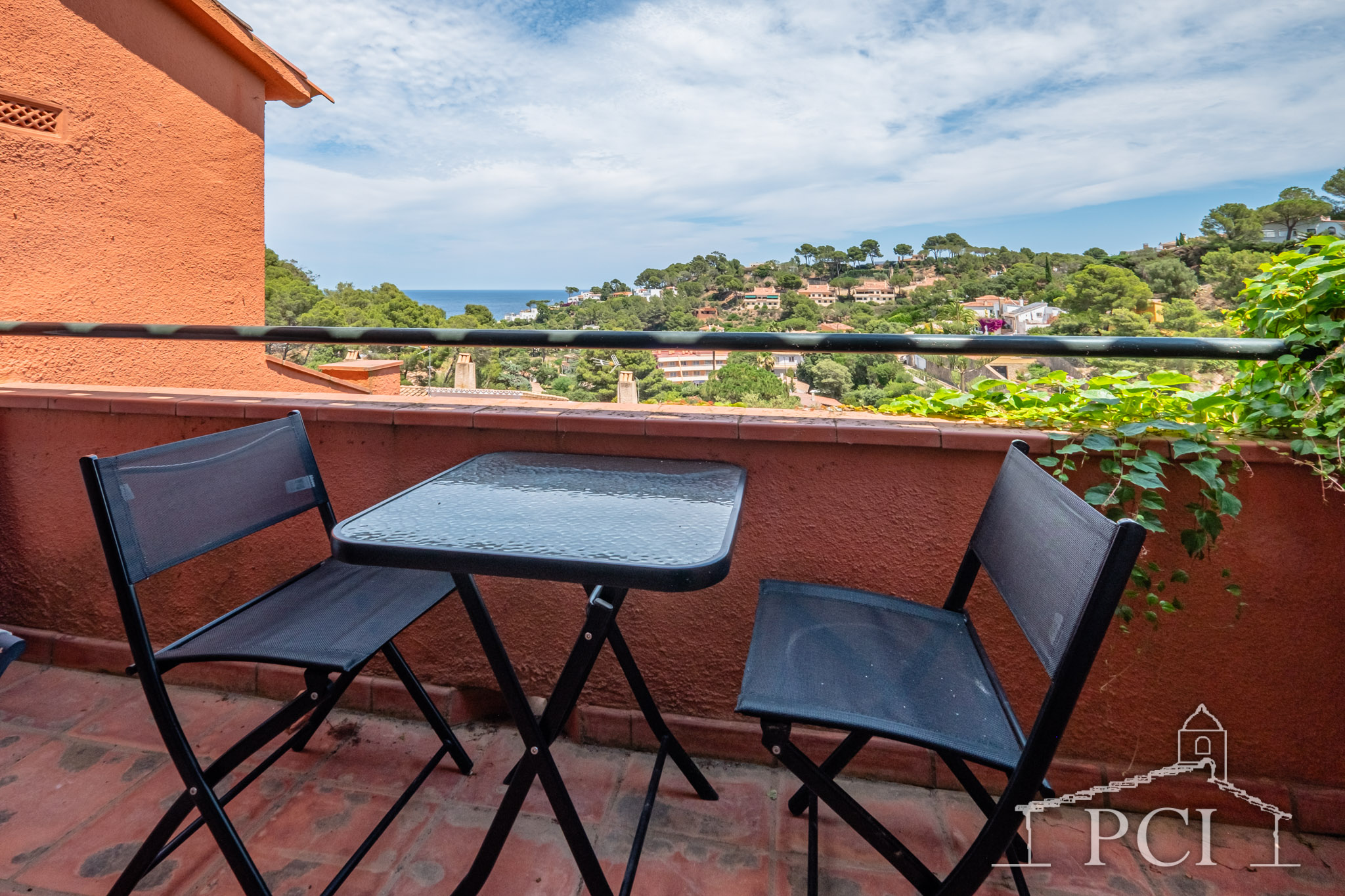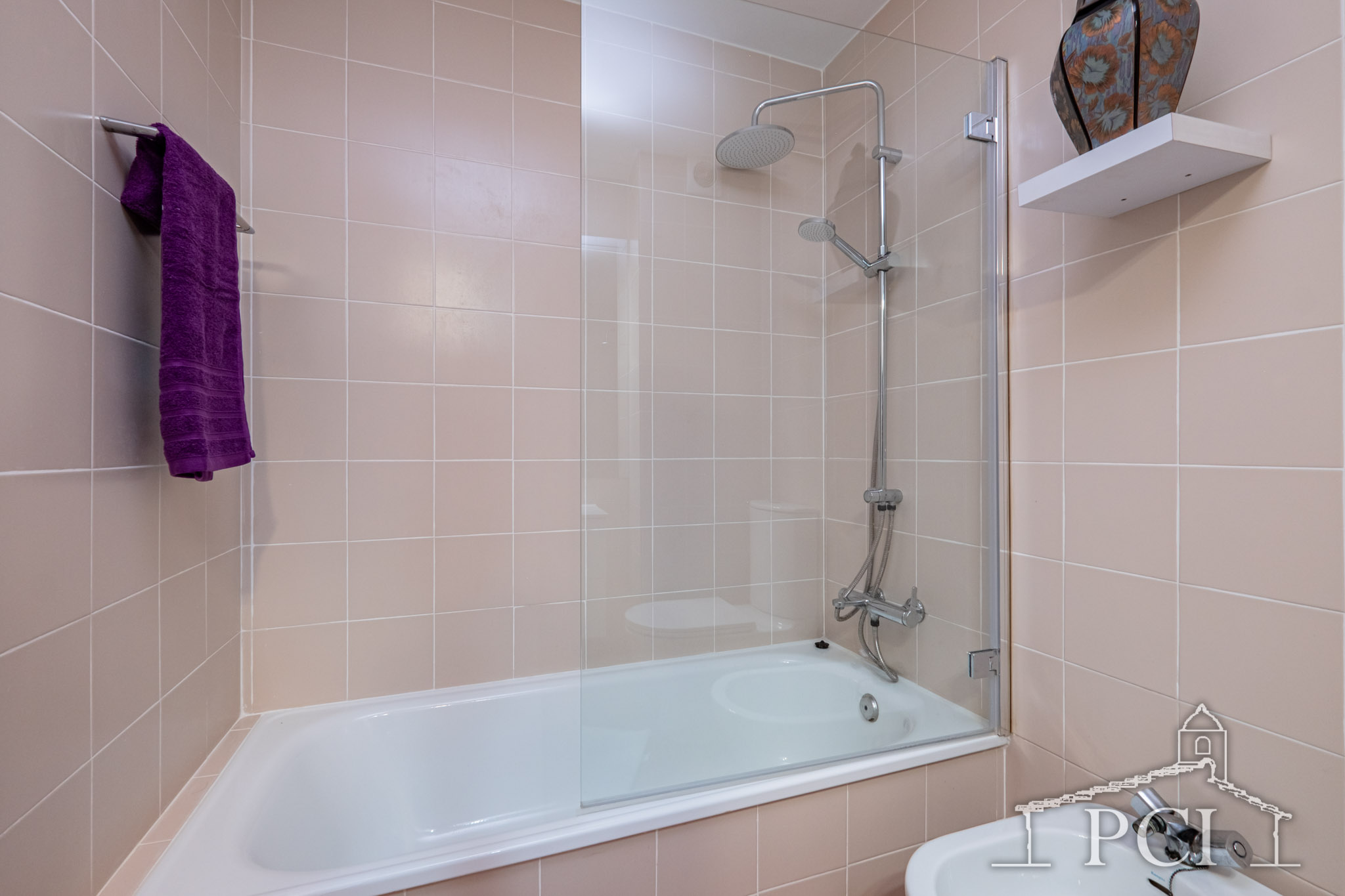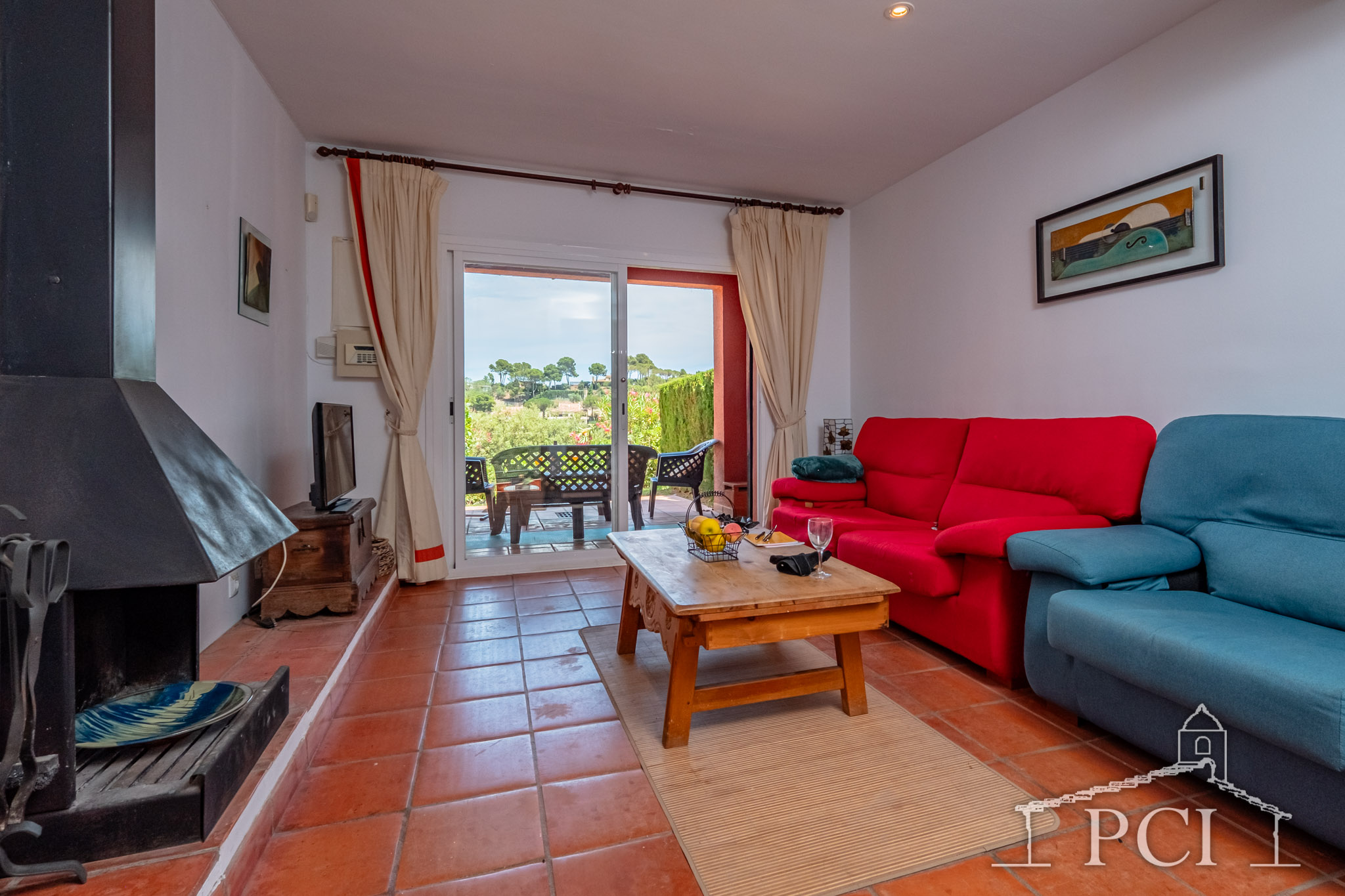 It has 4 bedrooms and 3 bathrooms located over 3 levels. Street parking in the community road. The community has a large pool, surrounded by terrace and gardens. There is a beautiful sea view from the pool area and also from the house entrance and some of the terraces.