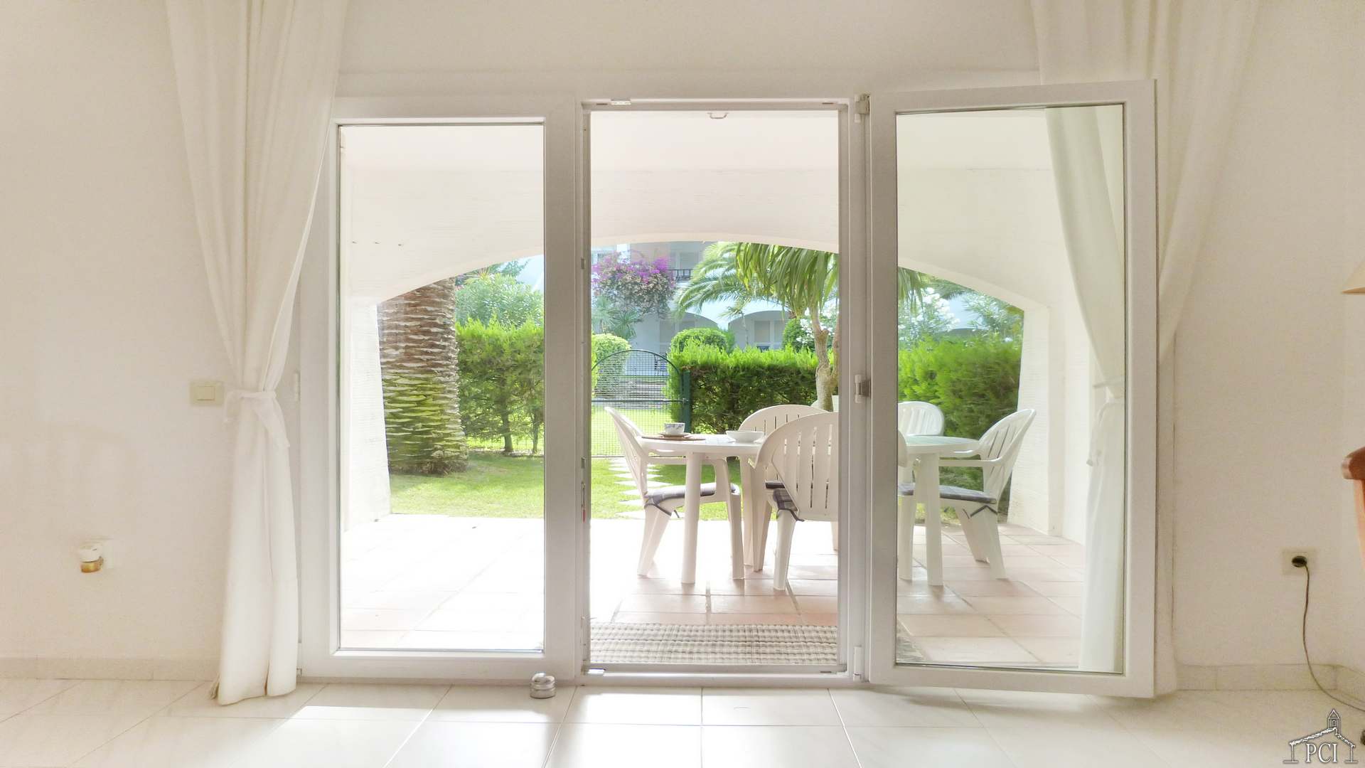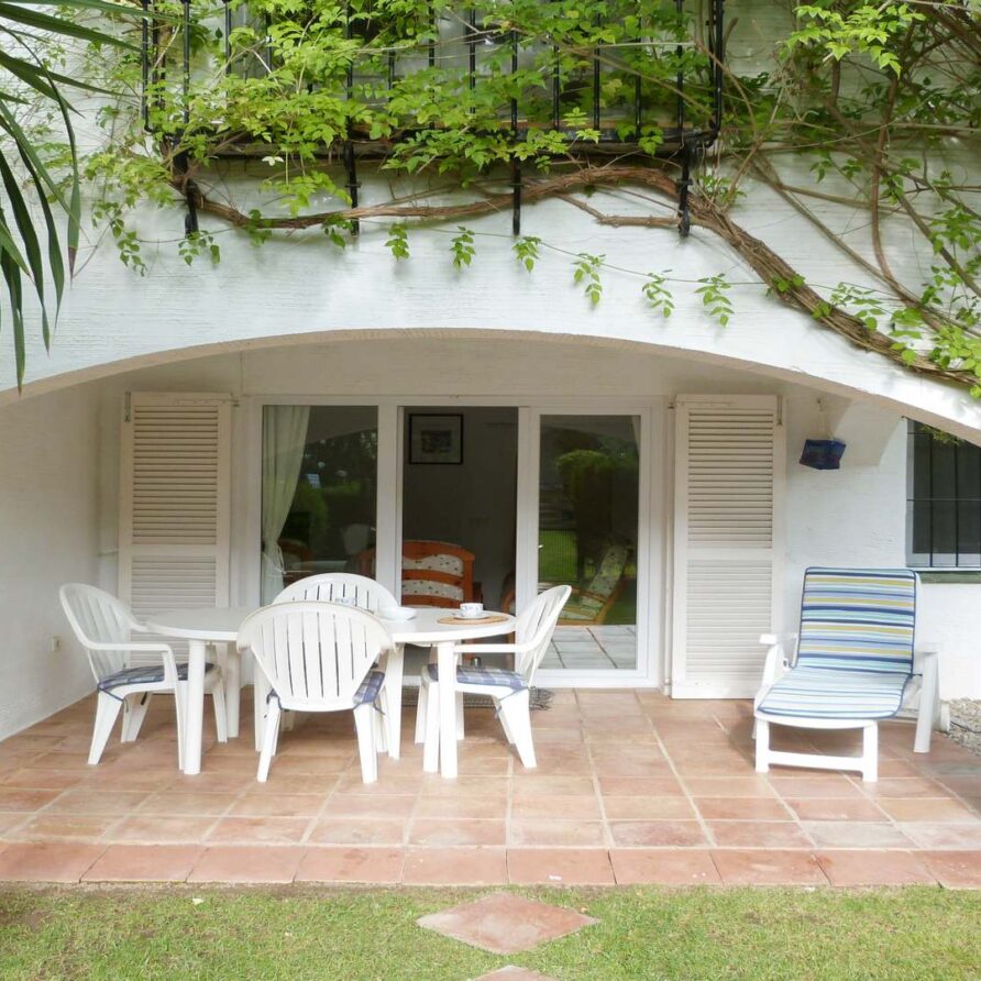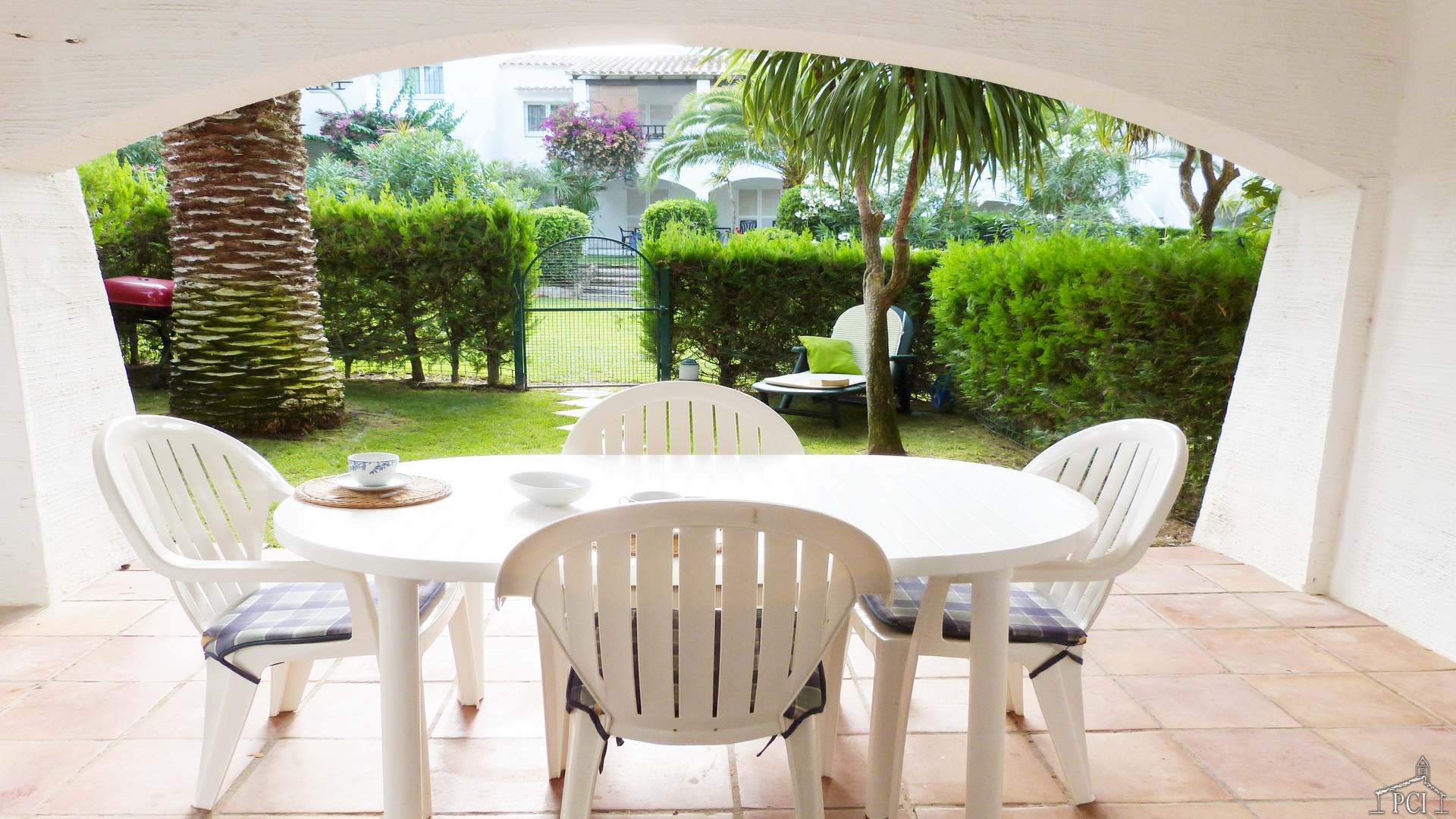 Covered terrace with beautiful private garden.