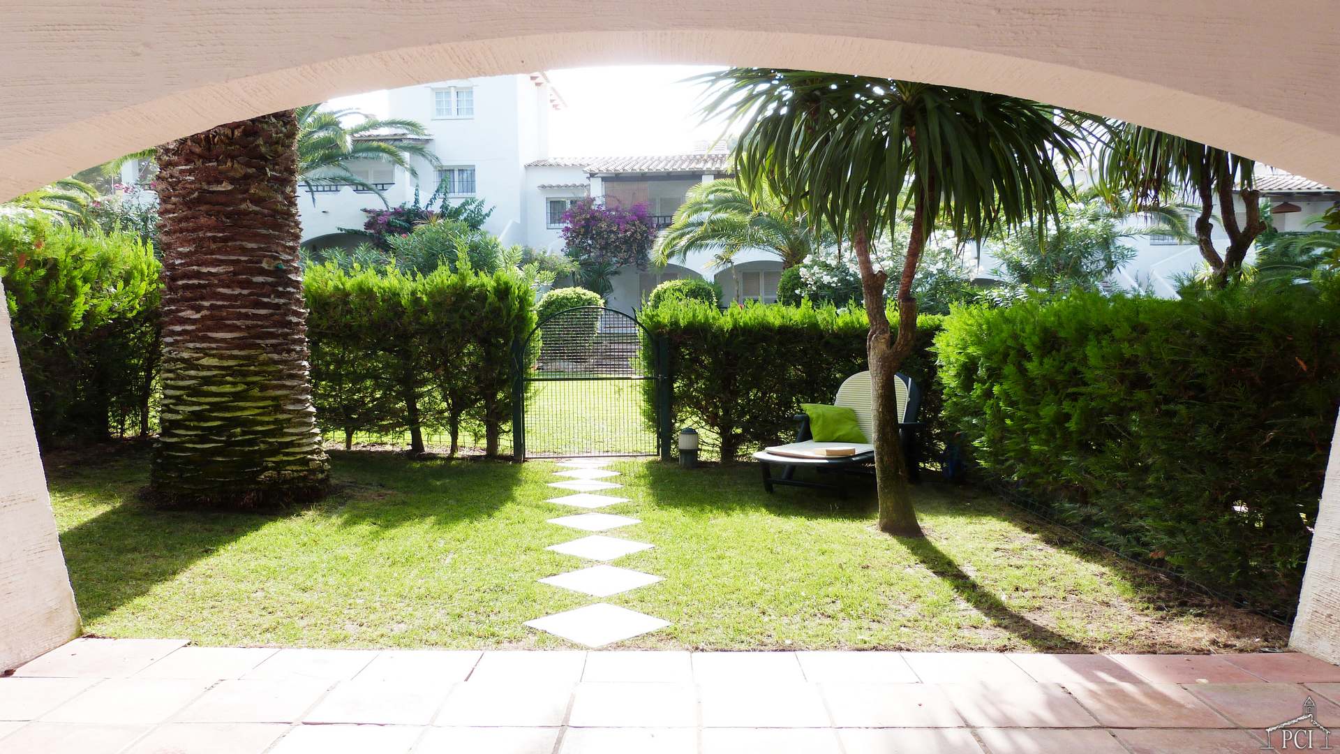 The private garden leads to the communal garden and swimming pool (with children´s pool area).