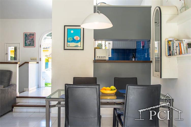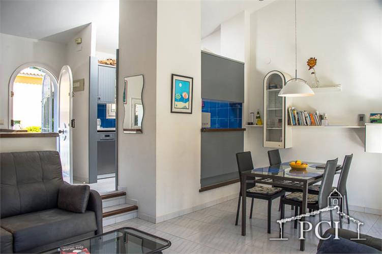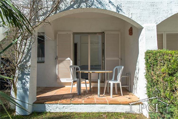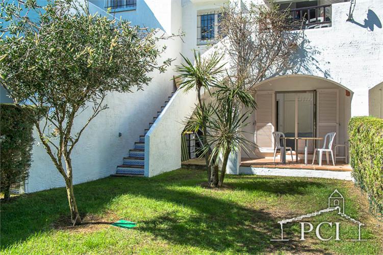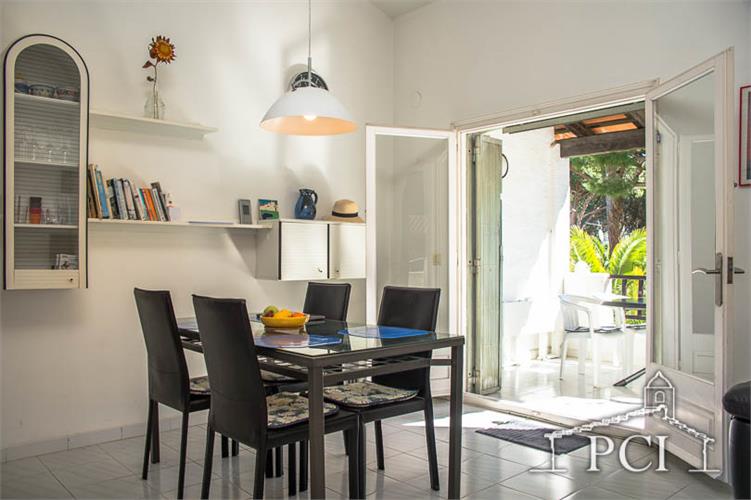 Entrance through a south facing garden, kitchen with dishwasher, hob, oven and fridge/freezer,kettle, sitting room with two sofas and dining area. Doors lead to the large covered terrace and esternal stairs leading to the private garden, which in turn leads to the comunal garden and pool.