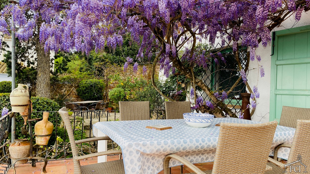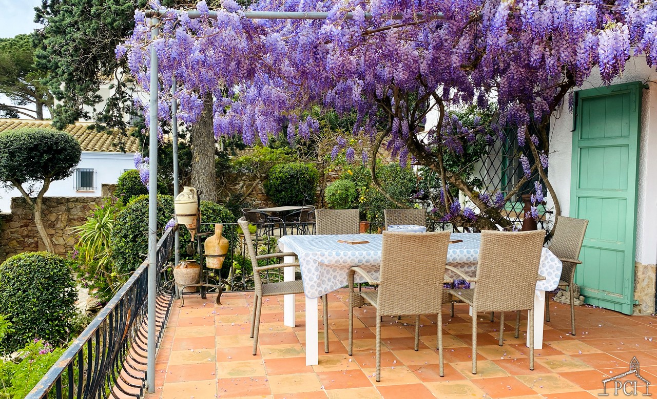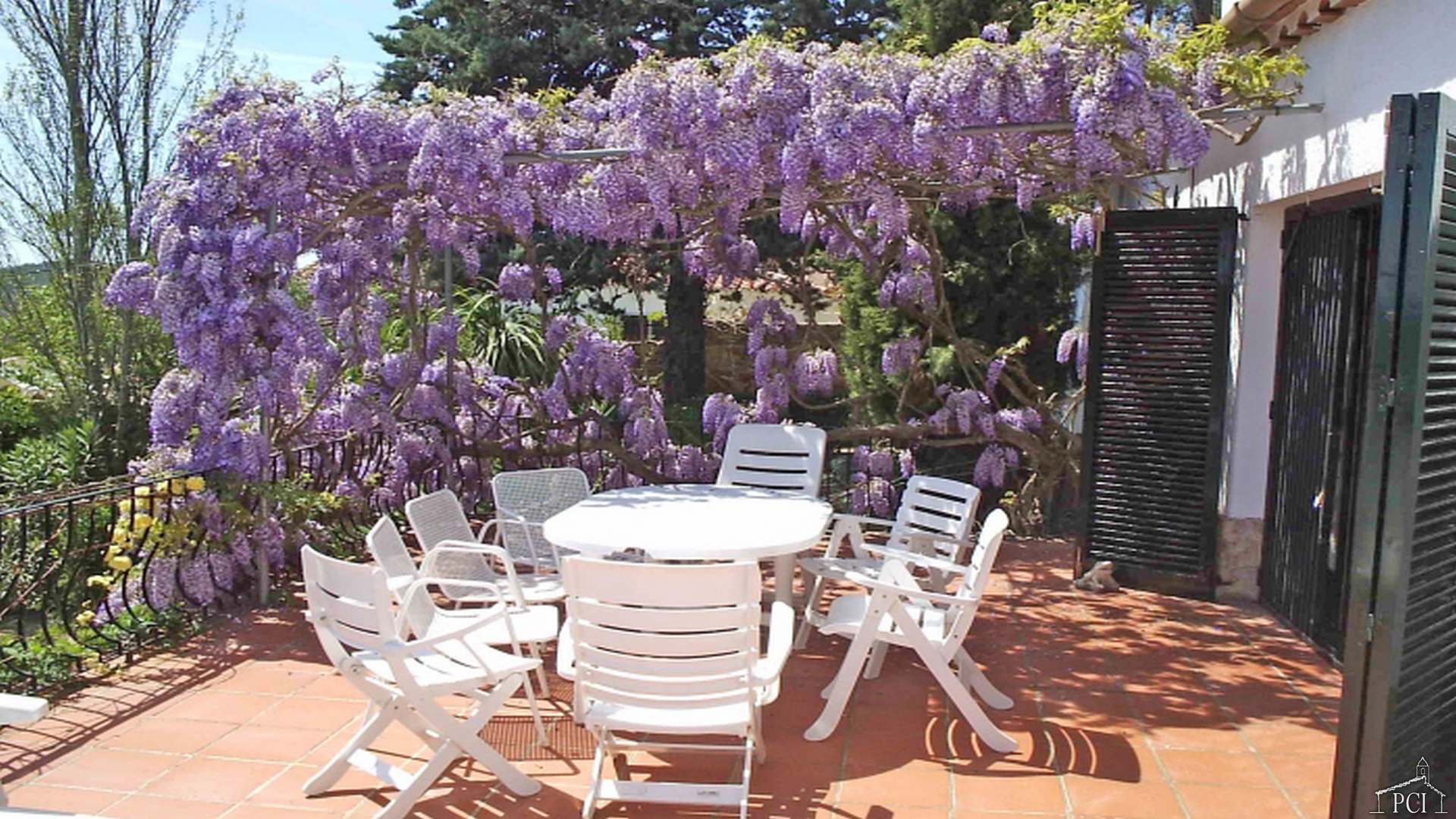 Una gran terrassa a la part posterior de la casa, privada i amb accés a la piscina, i l’altra gran terrassa a la part davantera amb fabuloses vistes al camp i al mar.