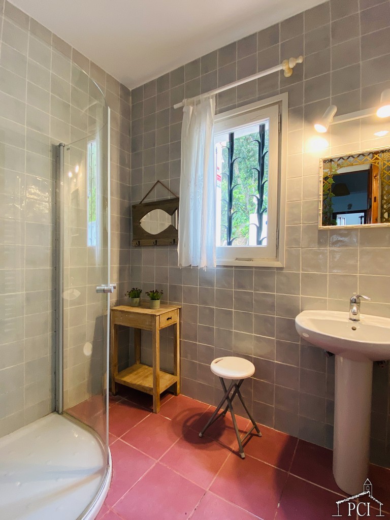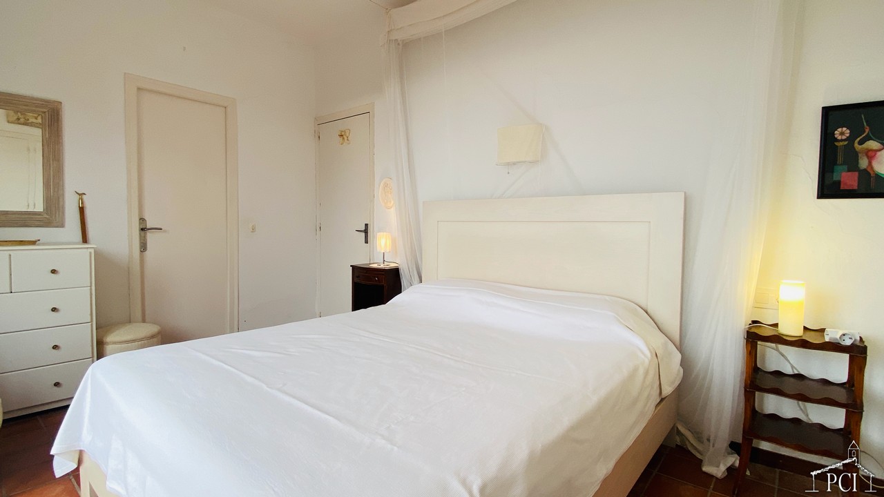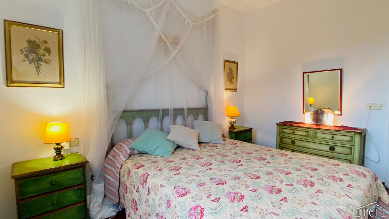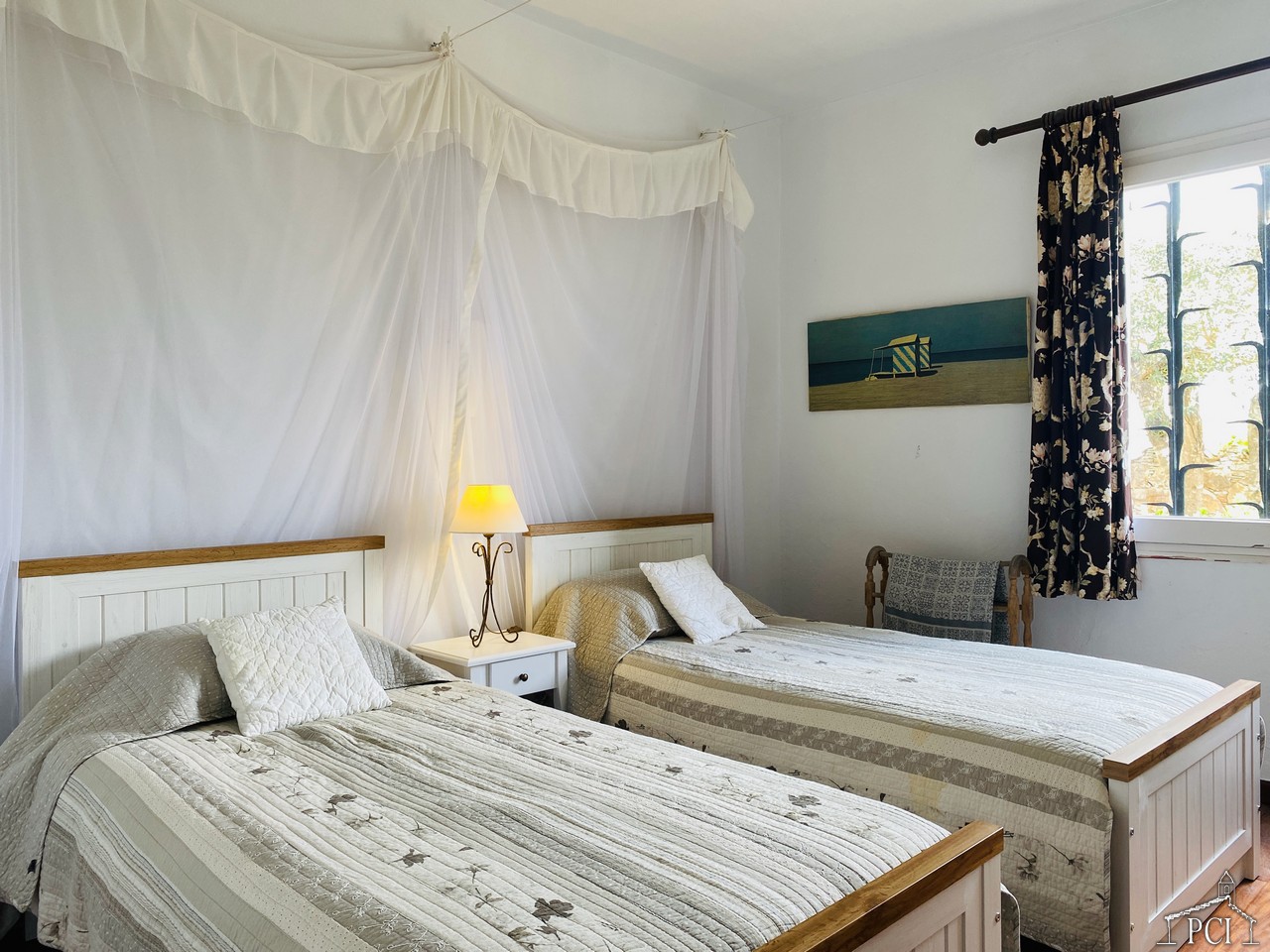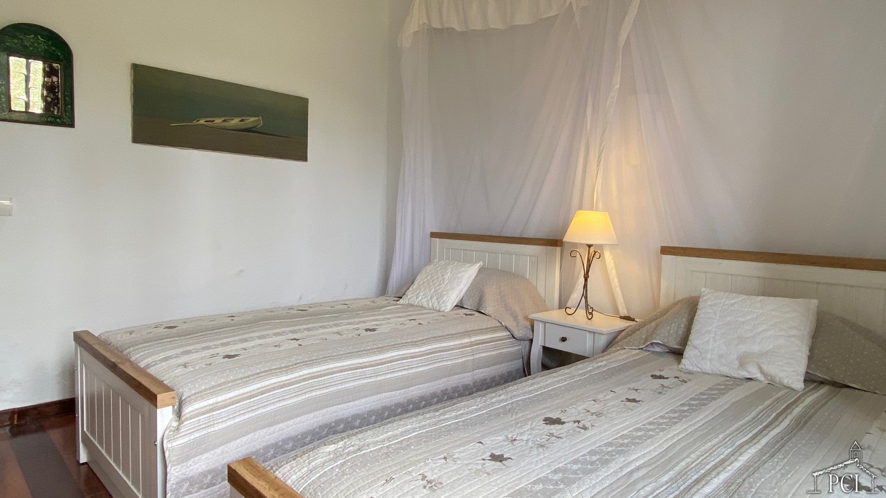 Distribuido en un solo nivel, un pequeño hall distribuidor se abre hacia el amplio salón-comedor (suelos de madera) con salida a dos terrazas, una de ellas con vista al mar y la otra con acceso a la piscina. La cocina americana y bien equipada: lavaplatos, cocina de gas, horno eléctrico, nevera combi, microondas. Consta de 1 habitación doble con baño/ducha y aire acondicionado, al lado de la cocina, el resto de habitaciones situadas después del salón-comedor: 1 suite con una cama doble (tamaño grande) con baño y salida a la terraza principal con vistas al mar, 1 habitación con cama doble, 1 habitación con 2 camas individuales, 1 lavabo de cortesía, 1 baño/ducha sin w.c.