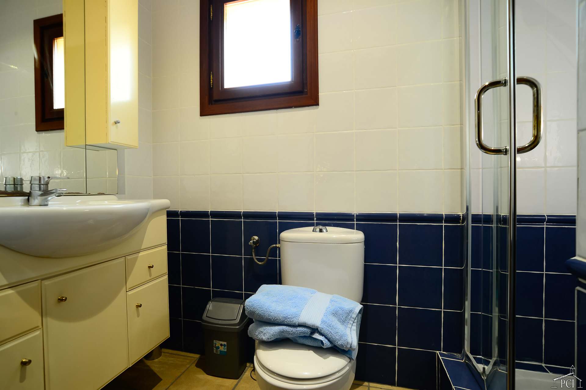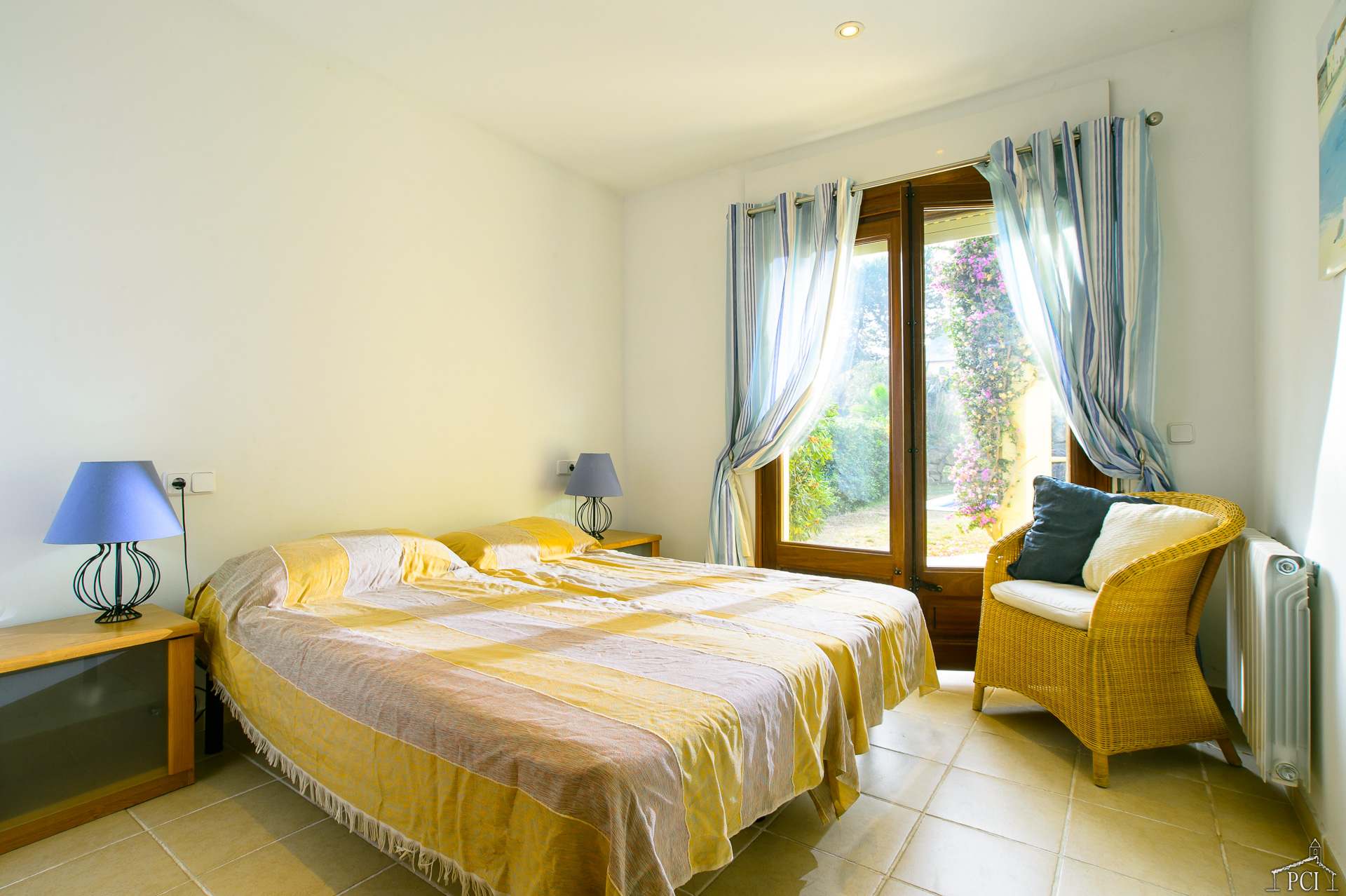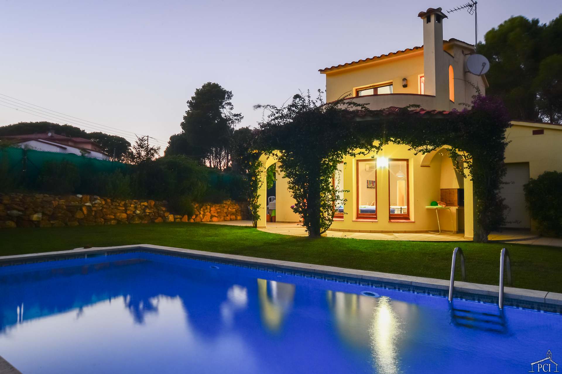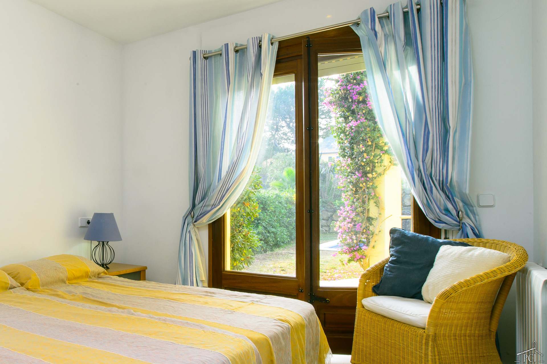 3 chambres – 2 avec lits jumeaux et 1 avec lit double, deux salles de bains – une en suite (sans toilettes), toilettes, cuisine entièrement équipée avec lave-vaisselle, four, plaque de cuisson, réfrigérateur et congélateur, grand salon et salle à manger menant au jardin privé entièrement clos et à la piscine.