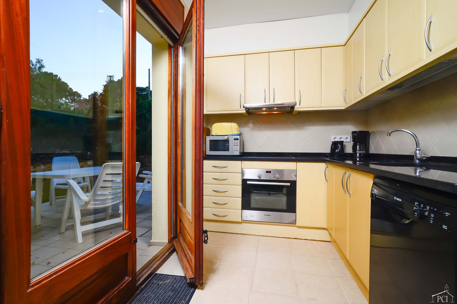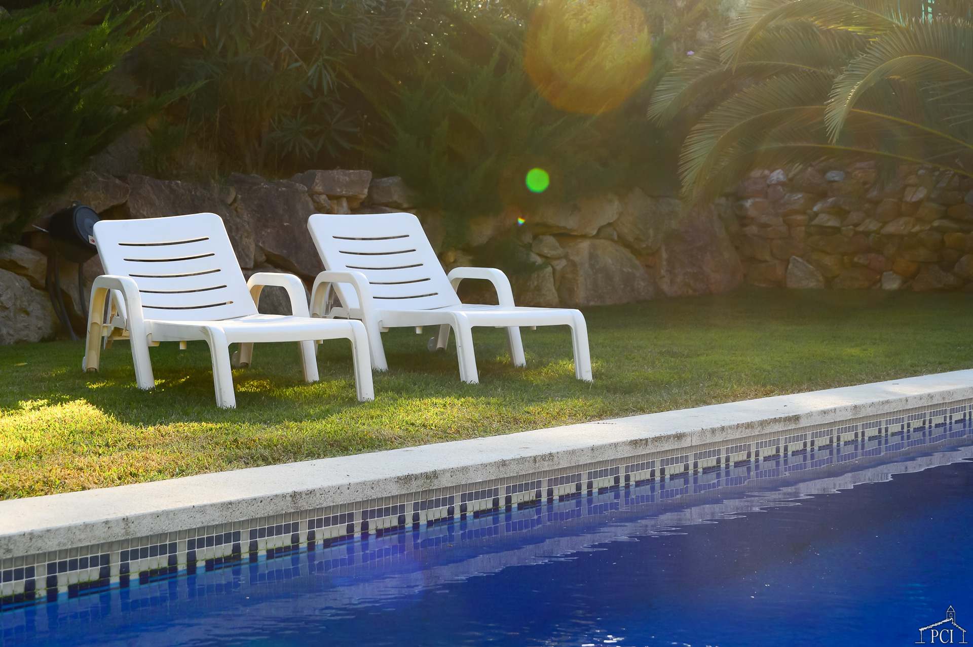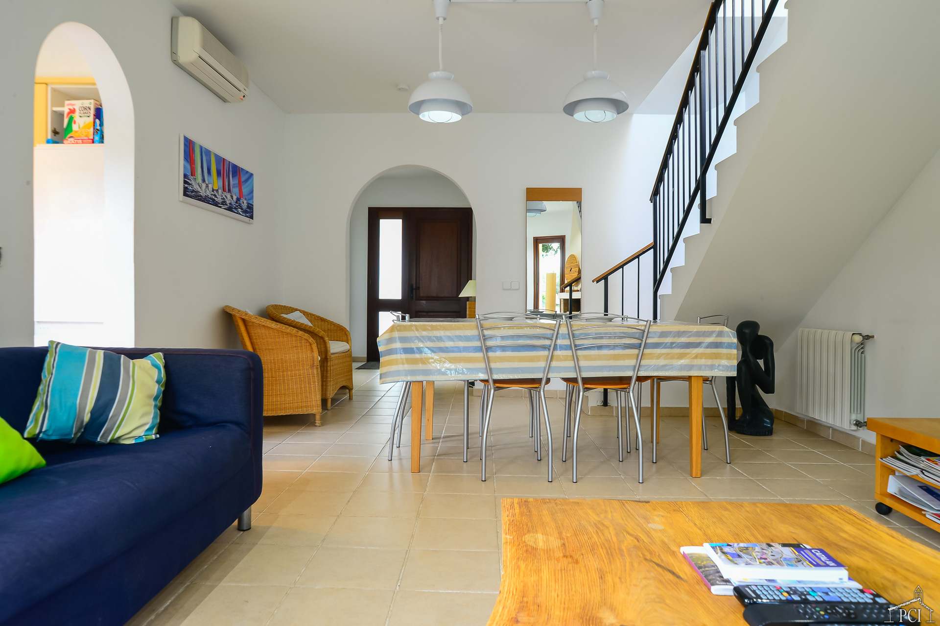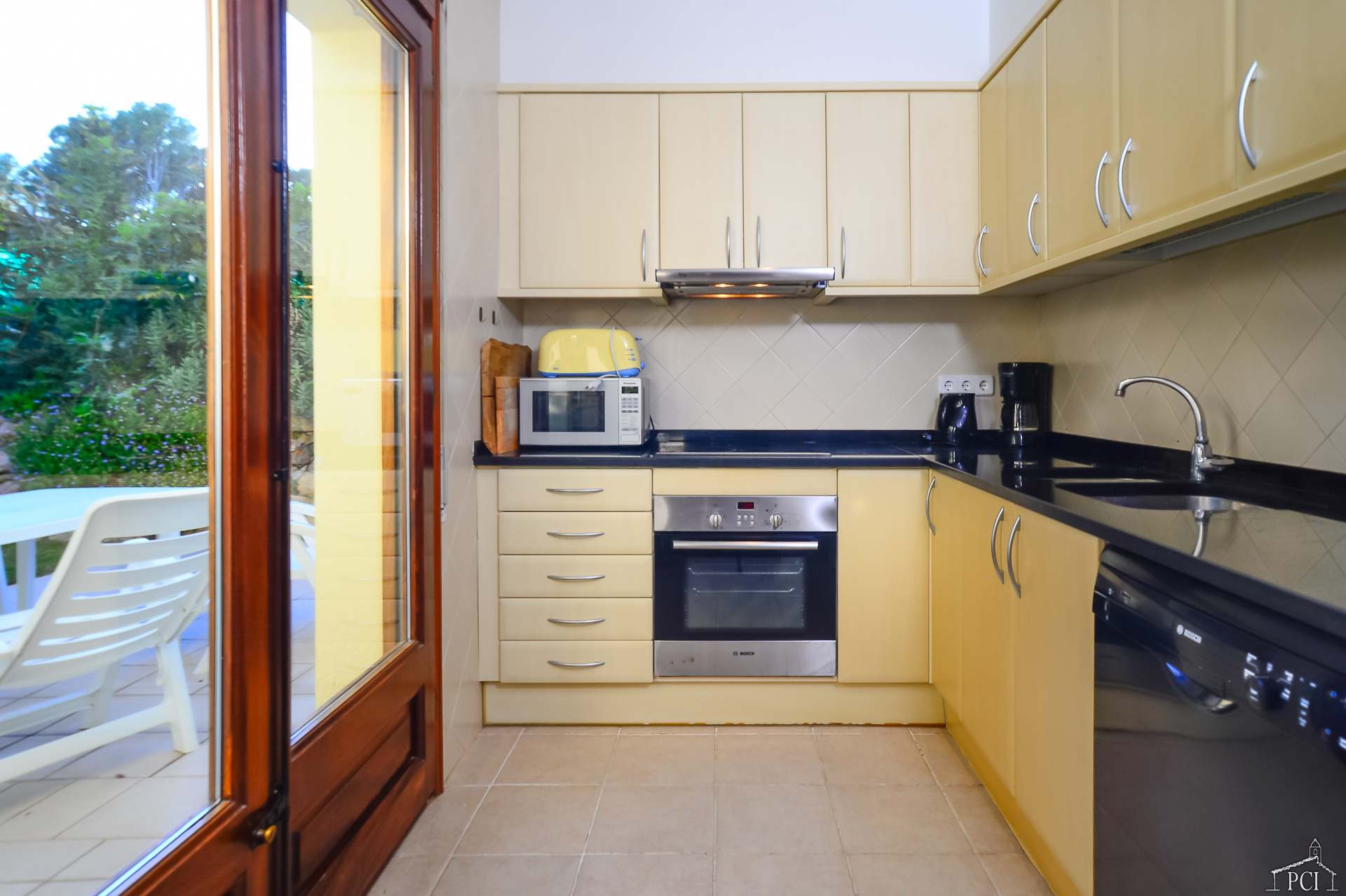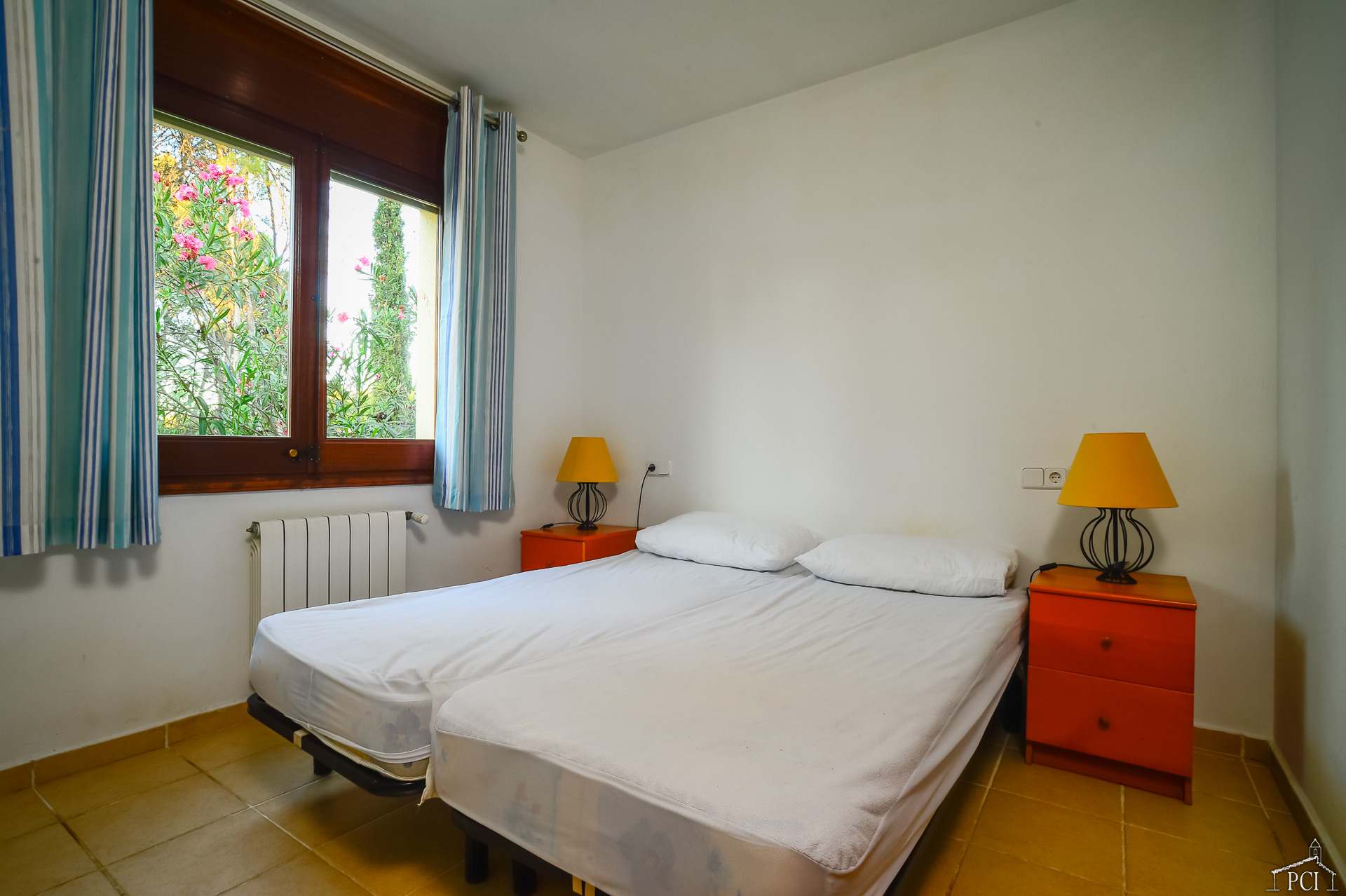 3 chambres – 2 avec lits jumeaux et 1 avec lit double, deux salles de bains – une en suite (sans toilettes), toilettes, cuisine entièrement équipée avec lave-vaisselle, four, plaque de cuisson, réfrigérateur et congélateur, grand salon et salle à manger menant au jardin privé entièrement clos et à la piscine.