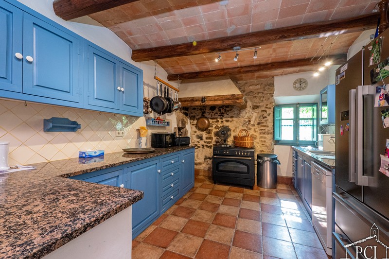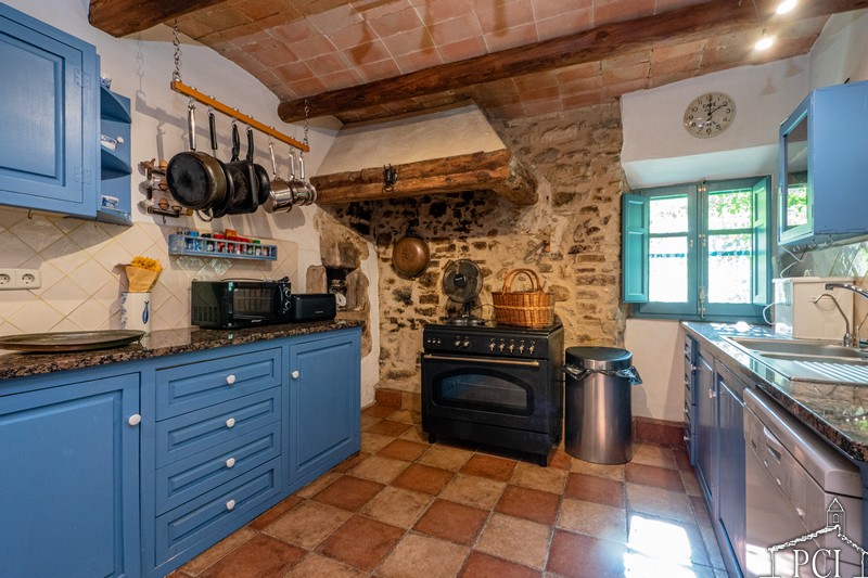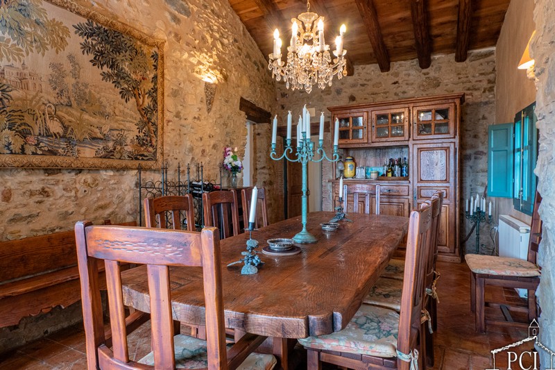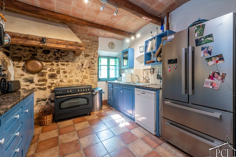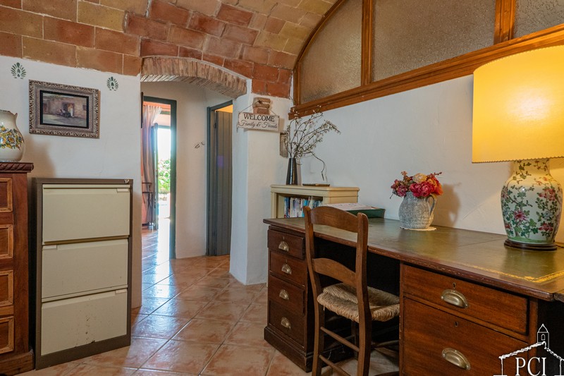 Nous sommes accueillis par une belle pièce en faisant de salle de lecture ou comme salle pour voir la télévision. Cuisine de style rustique bien équipée avec tous les ustensiles et appareils nécessaires : réfrigérateur américain, lave-vaisselle, micro-ondes, cuisinière à gaz avec four. Salle à manger très spacieuse avec une grande table en bois, salon avec accès à la terrasse qui mène à la piscine et aussi avec accès à une spectaculaire terrasse couverte équipée de mobilier du jardin. Chambre avec deux lits et salle de bain/douche.